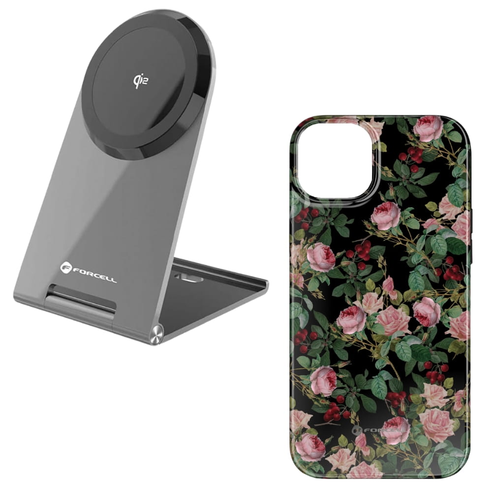 Ładowarka indukcyjna USB C Qi2 15W zgodna z MagSafe srebrna Flip Charge Forcell F-Energy