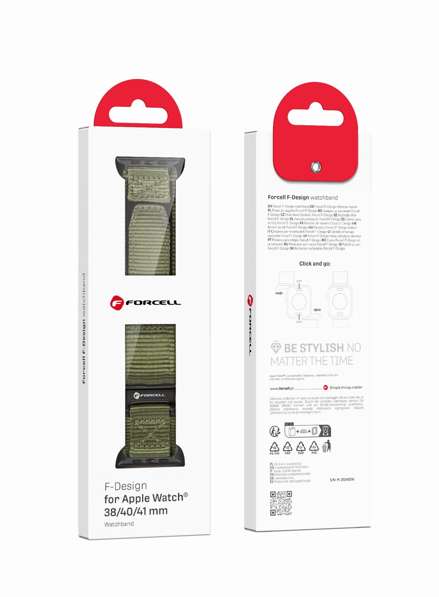 Pasek do Apple Watch rzep nylon 38 / 40 / 41 mm zielony FA05 Forcell F-Design