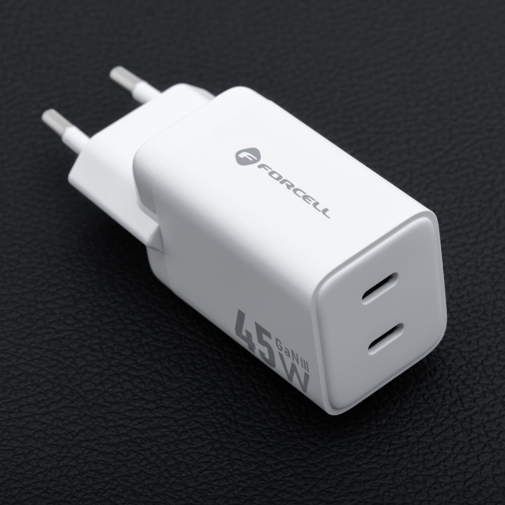 Szybka ładowarka Mini GaN III 2 x USB C QC4.0 PD 45W biała VT-36B Forcell F-Energy
