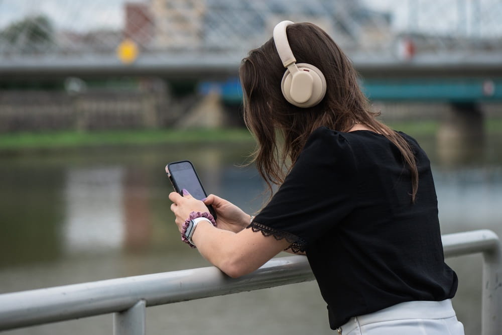 Dzięki ANC rozmawiasz i słuchasz muzyki bez zakłóceń. Technologia Active Noise Canceling redukuje hałas otoczenia i zapewnia komfort nawet w głośnym otoczeniu - w podróży, w pracy, podczas treningu na siłowni.