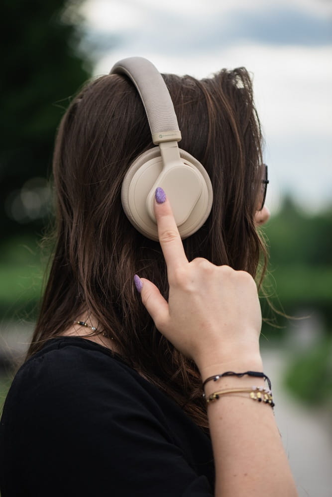 Słuchawki bezprzewodowe beżowe Bluetooth z ANC i wysokiej jakości mikrofonem. Dzięki technologii Active Noise Canceling zapewniają wyrazisty dźwięk nawet w głośnych miejscach, takich jak lotnisko czy zatłoczony autobus. Dodatkowym plusem słuchawek jest oryginalny design i wygodna obsługa dotykowa.